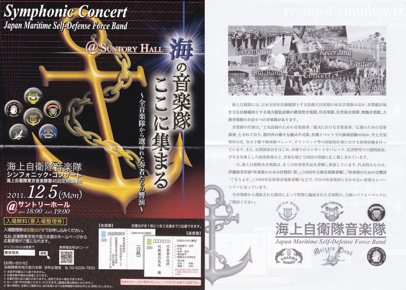 結局、中方音のファミリーコンサートも公式ページには一切名前でてこないまま応募締め切り日をむかえたみたいですし、京都の演奏会もあんな状態でしたから(今更言ってもしょうがないので詳細は書きませんが、個人的には今回の中方より対応悪かったと思います)、ホンマに大丈夫かいな、自衛隊?!