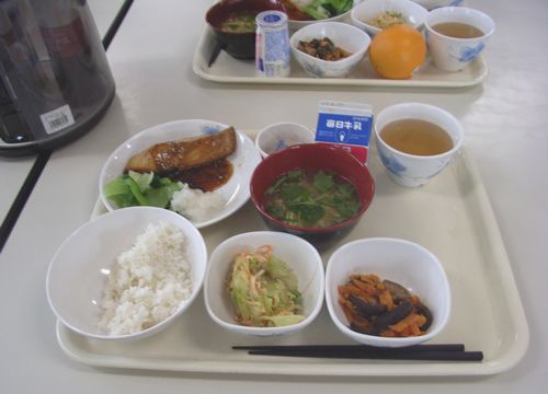 わたしは果物を食べないのでかわりに納豆のミニカップをいただきました。朝の残りらしいですが。